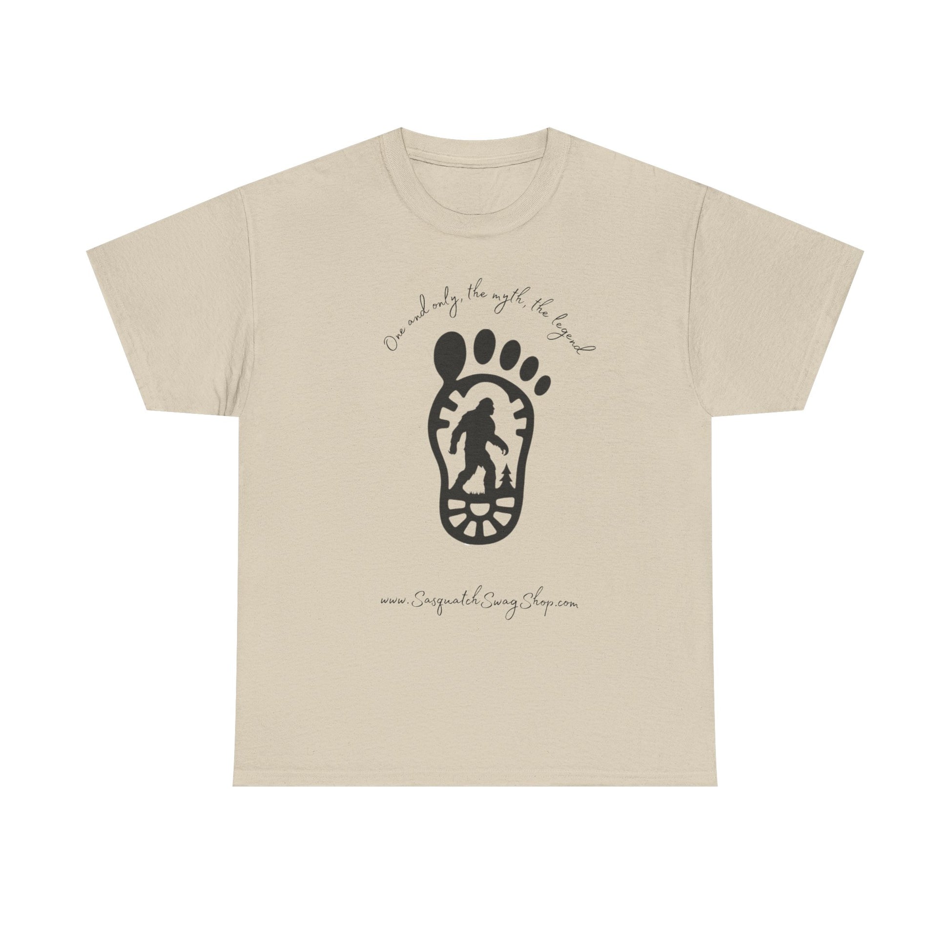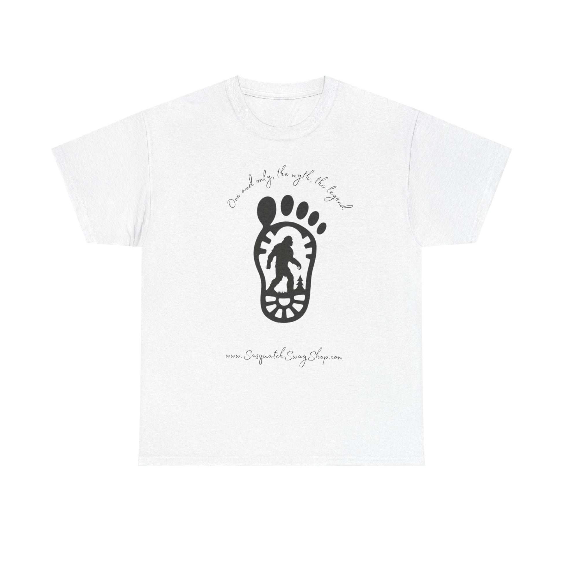 Bigfoot Footprint Graphic Tee — “One and only, the myth, the legend” Sasquatch T-Shirt